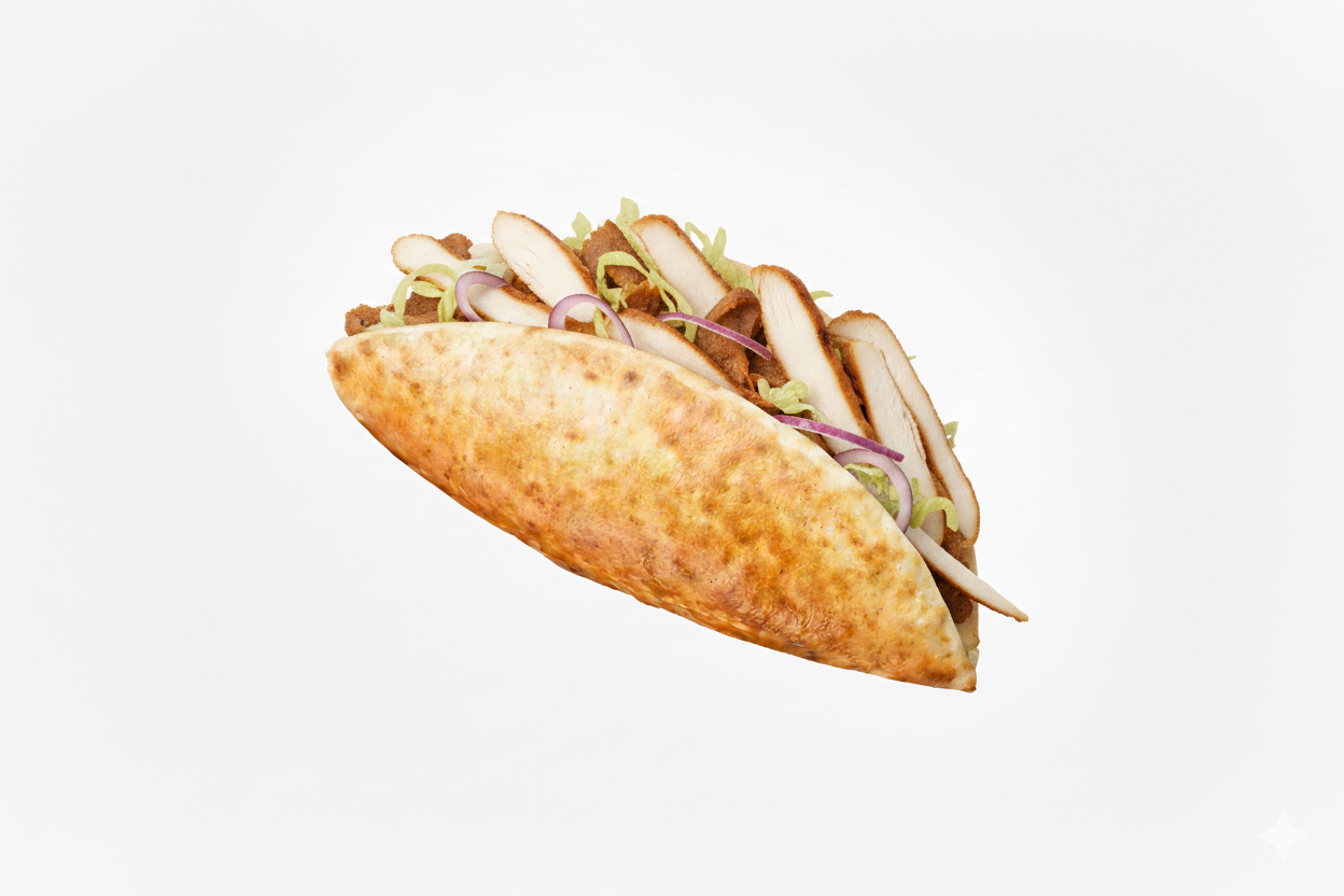 Sandwichbrød med fyld af valgfri protein, salat, tomat, agurk og dressing.
